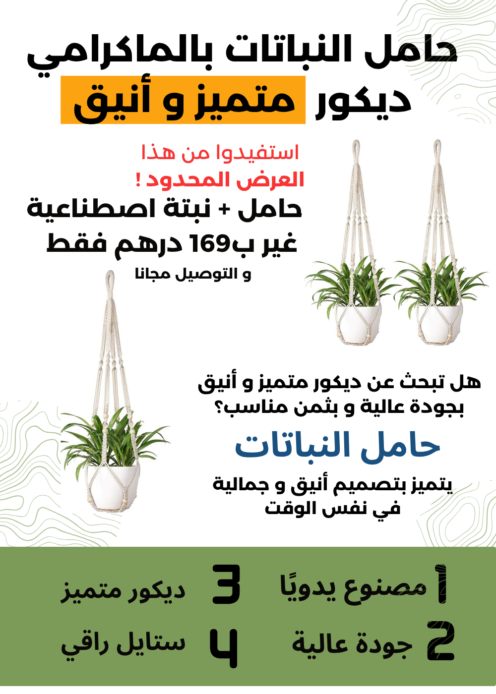 باك الديكور الطبيعي – حامل النباتات بالماكرامي + نبتة اصطناعية بثمن مناسب ! Pack déco naturel – Porte-plante macramé + plante artificielle à petit prix !